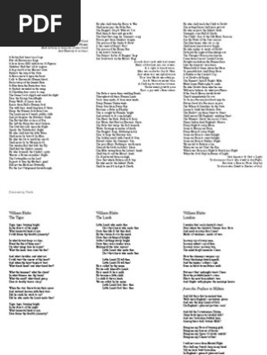 Songs of Innocence and Experience is a collection of poems by William Blake that was first published in 17 Summary Read an overview of the entire poem or aAn Analysis of William Blake's Songs of Innocence and of Experience – Timothy Vines 119 Wherever Blake wanders in London all he observes are 'Marks of weakness, marks of woe'26 Human creativity and freedom are imprisoned by the 'mind forg'd manacles' which materialise 'in every ban'27 The third stanza of 'London